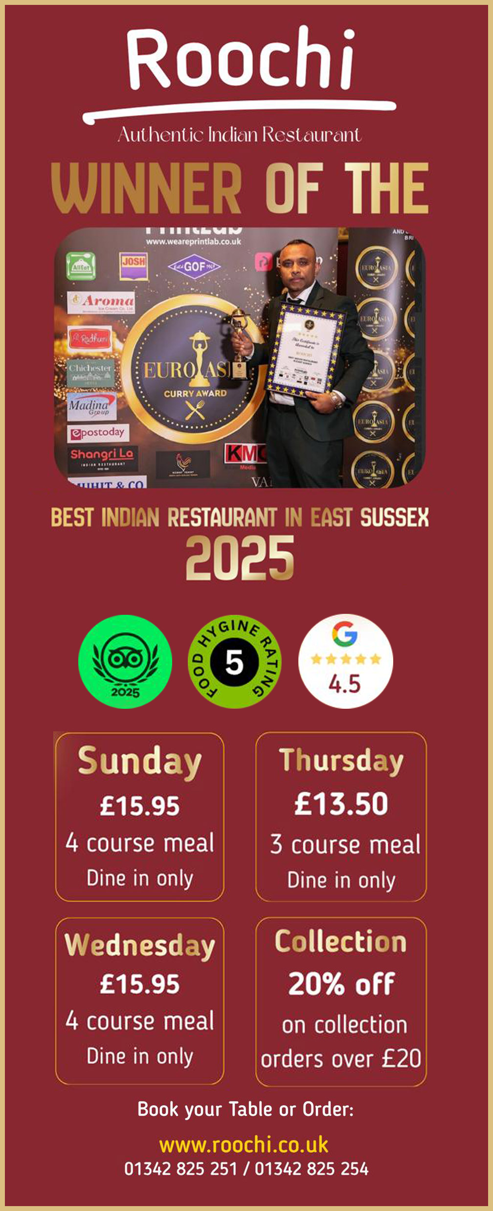 We are proud to present the finest chef in the culinary world. The management takes great care to ensure that our diners are happy with the food. We pride ourselves on our customer service and quality of food. ROOCHI INDIAN RESTAURANT uses only the very best ingredients to prepare your meal. In addition to the all time favourite dishes, we also offer our own specialities creating unique meals for you to enjoy. ROOCHI INDIAN RESTAURANT is an Authentic Cuisine in FOREST ROW, tempted by an unrivaled range of Authentic & Imaginative traditional and fusion dishes. Our approach to healthy cooking is that we try to minimize additives in our dishes. So enjoy your meal & have a memorable experience!!